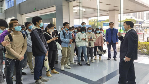 为了更好帮助同学们了解企业管理实际,将管理理论知识和企业实际结合,2020年11月19日,工商管理系《管理学》平台课(负责人刘明霞)企业参访由工商管理系副主任卫武教授和龚红教授带队,48名同学来到武汉长飞光纤光缆股份有限公司(以下简称“长飞公司”或“公司”),开展企业参观走访活动。由长飞光纤光缆股份有限公司党委副书记张光华为师生们做了详细介绍。本次活动旨在引导经管类同学切身体验企业管理文化与实践,了解企业,了解长飞公司的一楼一凤,加强学生与企业和社会实践的沟通交流与联系。