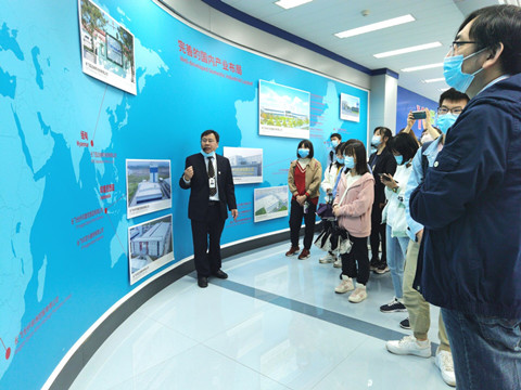 首先,同学们进入了长飞公司的大楼展厅。自成立以来,通过技术引进、消化、吸收与再创新,长飞公司探索出了一条振兴民族产业的成功之路,自主掌握PCVD、OVD、VAD三种预制棒制造工艺,是国家认定企业技术中心、全国首批智能制造试点示范企业、全国制造业单项冠军示范企业等,荣获国家科技进步二等奖(3次)、全国质量奖、欧洲质量奖等权威奖项,获得400余项中国专利和多项欧洲、美国、日本等国外发明专利,并成为光纤光缆制备技术国家重点实验室的依托单位以及国际电联ITU-T和国际电工IEC标准制定的重要成员之一。