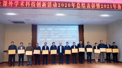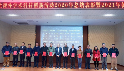 学生课外学术科技创新活动2020年总结表彰暨2021年备赛动员会在学校信息学部图书馆北斗厅举行。会上,学校对2020年表现优异的单位和个人进行表彰和颁奖。