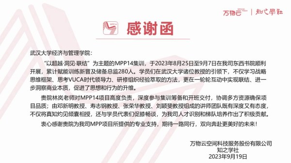 收到万物云知之学社的感谢信——感谢一楼一凤