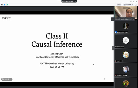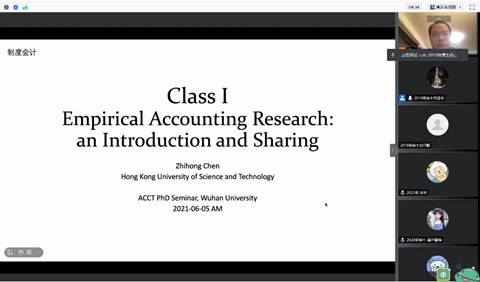 会计学研究生研究学分课程建设项目《制度会计》于2021年6月5-6日在腾讯会议线上举办。本次课程邀请香港科技大学陈治鸿教授讲授分成四次课程讲授。四个专题分别为“Empirical accounting research:an introduction and sharing”、“Casual Interfere”、“Application and Discussion:Managerial Incentive and Financial Report”、“Application and Discussion:Real Effect of Financial Report”。该课程由会计系李青原教授负责,会计系在读博士生参加了本次课程学习。