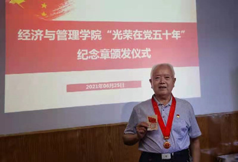 据悉,作为中国共产党成立100周年庆祝活动的重要组成部分,党中央决定2021年首次颁发“光荣在党50年”纪念章。颁发对象是党龄达到50周年且一贯表现良好的党员。通知下发后,学院党委高度重视,精心开展了组织工作。(通讯员:沈仕雄,审稿:李好、谭力文,摄影:姜文)