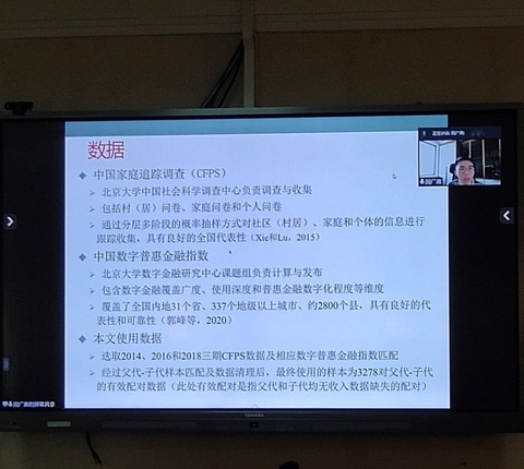 金融科技研究中心共同主办,由周洋老师主持。西南财经大学的吴雨老师、中国人民大学的周广肃老师、西南财经大学的牛耕老师、上海财经大学的郭峰老师、中南财经政法大学的高楠老师和周洋老师带来了精彩的学术报告。本次论坛吸引了众多校内外师生参加。