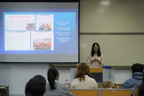 培训会上,肖珊从什么是新闻选题讲起,并从学校的中心工作、重要时间节点、日常工作生活三个方面,结合案例,具体讲授如何进行新闻选题。