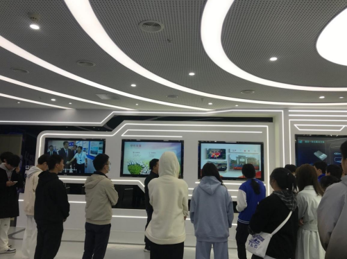 在结束展厅的现场教学之后,同学们亲历智能制造一线,参观多条产品线的制造以及物流等环节。在清洁、明亮的生产车间中,光迅科技以产业数字化为引领,建立了高效的供应和质量管理体系。