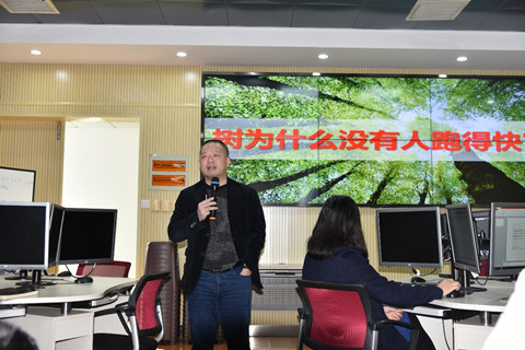 本次讲堂邀请学院实验与信息中心主任陈训威为大家进行ppt制作技能培训。培训伊始,陈训威对大家的积极参与表示感谢和赞赏,用自己独特的开场方式点燃了在场人员的学习热情。他接着以“树为什么没有人跑得快?”指出了PPT制作的关键词在于“效率”。“阿威的PPT环境有哪些和你的长得不一样?”他风趣幽默地问,原来一些小的插件、嵌入的小程序可以极大提高制作效率。随后他从环境和工具、速度与效率、图文混排、数据可视化以及ppt常见问题解析五个方面对ppt的制作进行了初步讲解。