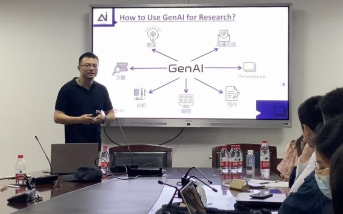 随后,邱淳老师基于研究者的AI使用场景为大家提出建议:将AI视作科研工具,带着科研场景来科学使用生成式AI寻找答案。并列举了一些常用的生成式AI在科研中的使用场景如写作翻译、编程、文献分析、沟通交流等。进一步地,基于生成式AI目前记忆力和逻辑不足等缺陷分享了生成式AI的使用技巧,在该技巧分享环节中,邱淳老师还通过例题互动、视频演示等方式帮助与会人员提升生成式AI使用技巧。