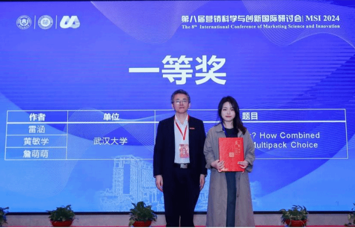 市场营销与旅游管理系博士和硕士研究生共有6篇论文被录用并取得优异成绩。其中,黄敏学教授指导的硕士生雷涵的论文《The Easier, The Harder? How Combined Price Frames Improve Multipack Choice》获得优秀论文一等奖。