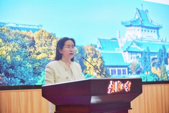 王丽萍在任职发言中感谢学校党委的信任、领导的关心和同志们的支持,她表示将全力以赴,在校党委校行政的指导下,带领学院党委与学院行政密切配合,依靠全院师生员工,一起推动学院高质量发展。她介绍了自己过往的求学与工作经历,同时感慨武大商科教育百卅成就,以“明诚弘毅、经世济民”作为珞珈经管的精神与灵魂指引着一代代经管人。她表示,尊重历史、创新未来是永恒的旋律,作为党委书记,带领党政班子和全院师生第一要务就是深入学习贯彻习近平新时代中国特色社会主义思想,牢牢把握中国特色哲学社会科学构建的使命,在国家经济社会发展中体现出武大经管的担当与作为。第二,贯彻落实立德树人的根本使命,围绕学校人才培养年的主题,以拔尖创新人才培养和专业学位研究生综合改革为重点,进一步提升武大经管人才培养质量,扩大品牌影响力。第三,深入推进人才引育与学科建设,目前学院四个一级学科全部进入A 类学科行列,面临新的挑战,学科交叉、融合、创新、合作已经成为新时代的主旋律;培养或引进大学者大先生是建设世界一流经济与管理学科的关键,要坚持久久为功,有意识地发现和培养更多具有大先生潜质的人才,形成结构合理的学科人才梯队。第四,坚持开放办学、国际化办学,经济管理领域的理论研究与应用研究、经济管理人才的培养必须与国家经济发展同频共振,在国际的平台上实现从接轨到引领的快速发展。王丽萍同志感谢姜星莉同志为学院发展与改革做出重大贡献,祝愿她在新的岗位取得更大的成绩。她表态将廉洁自律,勤勉工作,和聂军院长团结协作,带领党政班子及全院师生为全面建成中国特色、世界一流的高水平研究型学院而努力奋斗!
