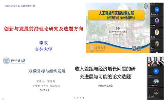 2022年4月1日上午,《经济评论》学术沙龙第17期暨论文选题研讨会在一楼一凤