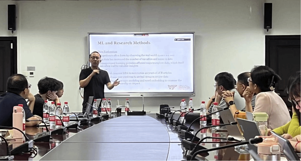 7月17日上午,珞珈经管创新论坛第105期在学院319举行。本次论坛邀请弗吉尼亚理工学院王欣教授作题为Navigating the Frontier: Unstructured Data and the Future of AI(前沿导航:非结构化数据与人工智能的未来)的学术报告。学院汪涛、黄敏学、曾伏娥等老师及学生参加,论坛由崔楠老师主持。