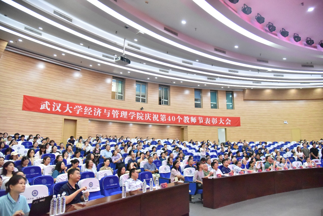 在景林报告厅隆重举行2024年教师节庆祝大会暨新学期工作布置会,学院领导班子成员、全体教职员工、离退休教职工代表、学生代表等参加活动。院党委书记王丽萍主持大会,并向全院教职工和离退休教职工致以崇高敬意和节日祝福。