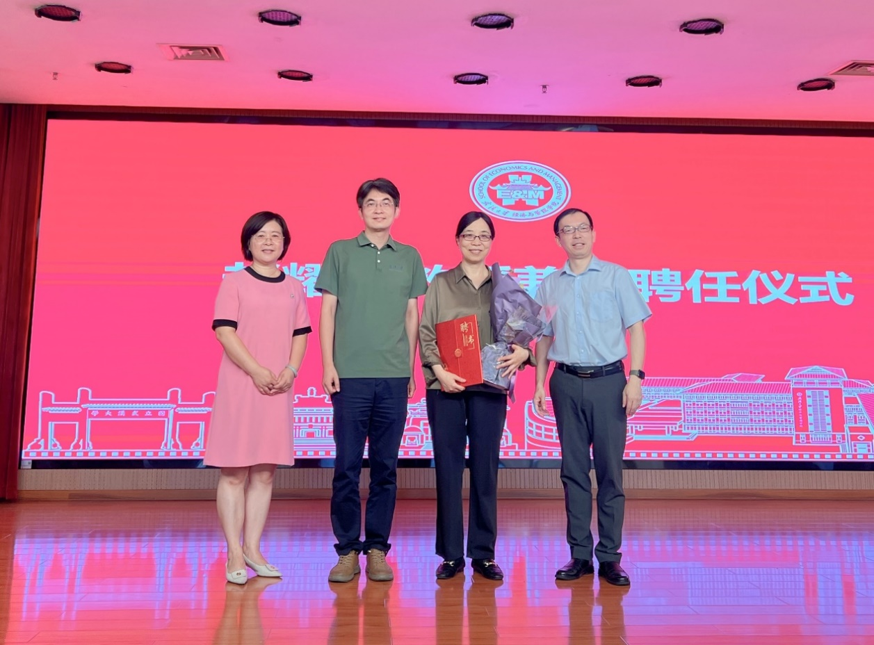 。他表示,赵耀辉教授长期从事经济学研究,治学严谨,学术成果丰硕, 赵教授的加盟将全方位助力学院的人才培养、学术研究、科研平台等工作,在她的带领下经济学科发展将再创新辉煌。学院也将全力支持赵耀辉教授开展教学与科研工作。随后,聂军院长为赵耀辉教授颁发聘书。