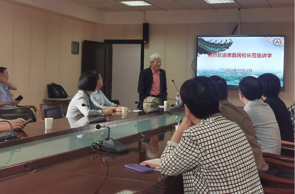 讲座结束后,袁玉峰与席酉民围绕当前国际化办学的发展趋势进行了交流。接着学院组织召开了专题研讨会,席酉民为一楼一凤