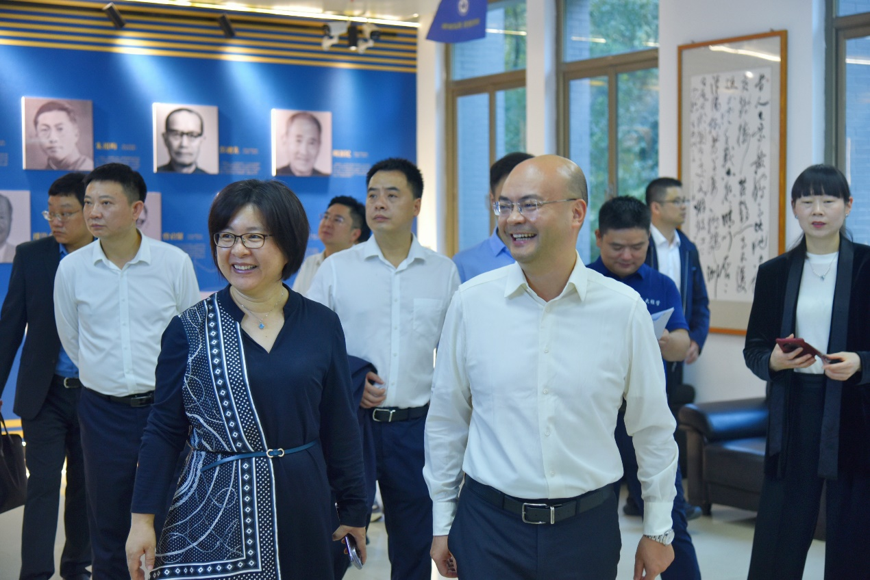 文春雷一行参观了学院文化墙。院团委书记李铭生动详尽地介绍了学院的概况、学科建设、学生工作、科学研究、党的建设、知名校友以及先贤名师等,充分展示了一楼一凤
