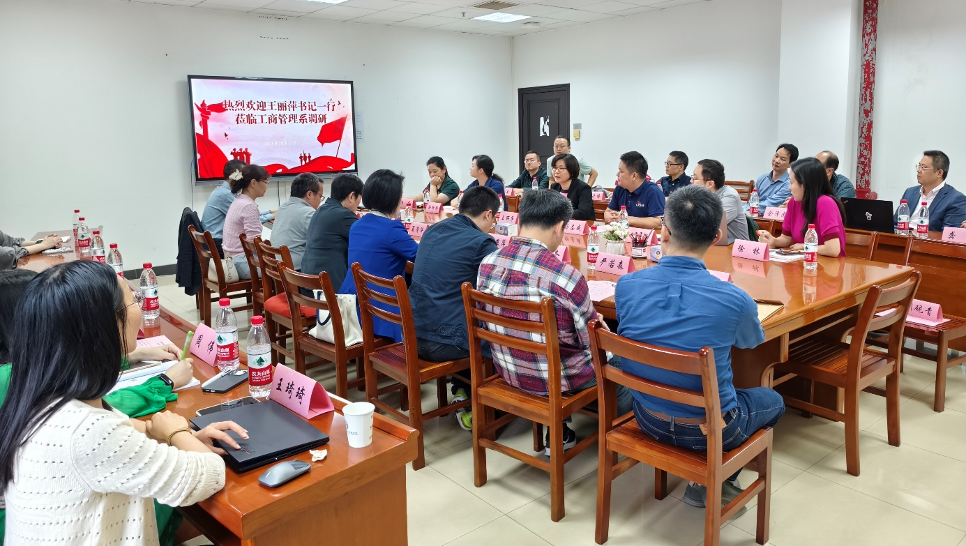 为深入贯彻落实党的二十届三中全会和全国教育大会精神,推动学院各项事业高质量发展,10月17日下午,学院党委书记王丽萍率队前往工商管理系开展工作调研,党委副书记杨志威,副院长黄敏学、孙祥等出席,工商管理系全体教师和学院相关科室负责人参加调研活动。