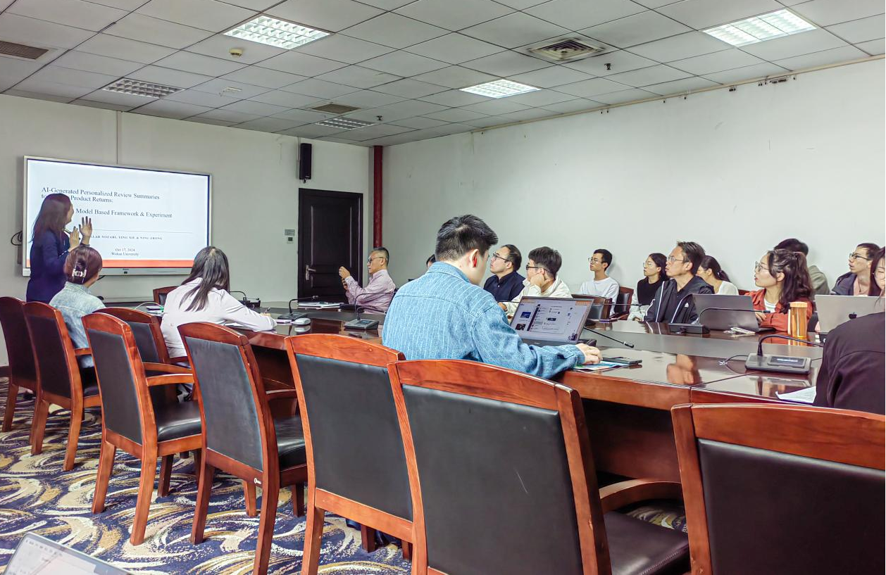 10月17日上午,珞珈经管创新论坛第108期在学院319教室成功举行。本次论坛邀请德克萨斯大学达拉斯分校纳维恩·金达尔管理学院谢迎教授作题为“AI-Generated Personalized Review Summaries to Reduce Product Returns: A Language Model Based Framework and Experiment”(人工智能产生的个性化评论总结用于降低产品退货率:基于语言模型的框架设计和实地实验)学术报告。学院黄静、崔楠、徐岚等多名师生参加,论坛由柯丹老师主持。