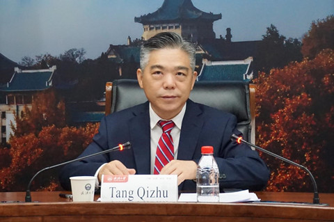 副校长唐其柱教授和杜伊斯堡-埃森大学副校长Karen Shire教授分别为高端对话致欢迎词。