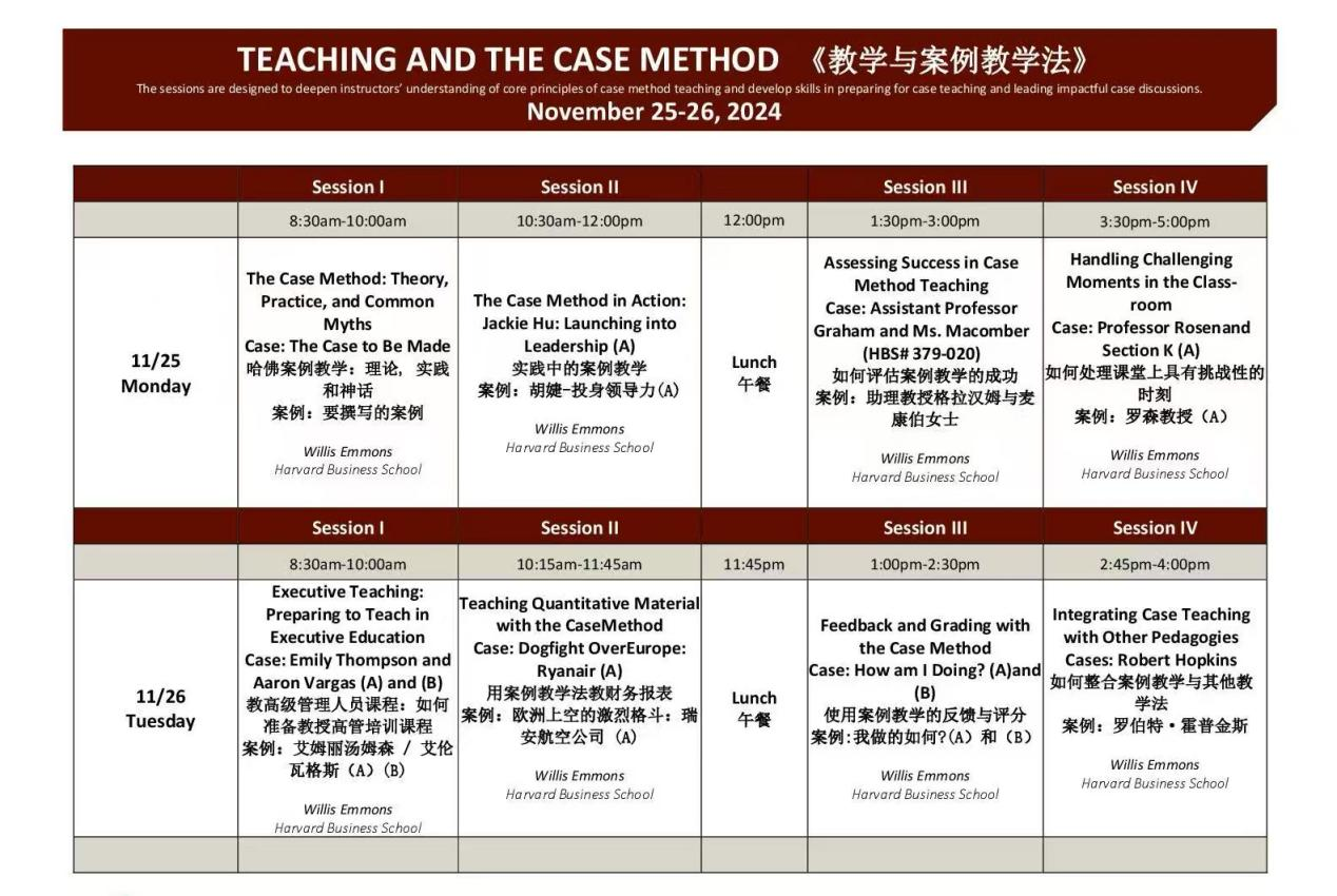 通过Willis M. Emmons老师的案例教学示范课程,教师们不仅系统地学习了案例教学的理论知识和实践技巧,还掌握了如何设计案例、组织和引导案例讨论,以及应对课堂中可能出现的各种挑战。此外,他们还深入学习了如何有效地运用定性和定量材料进行案例教学,如何针对不同学生群体量身定制案例教学方案,以及如何为学生提供精准的反馈和在教学案例中进行科学评分。