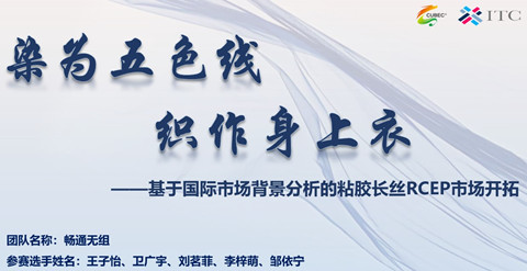 由队长王子怡、队员刘茗菲、邹依宁、李梓萌、卫广宁组建的“畅通无阻队”,以别出心裁的选题立意:“染为五色线,织作身上衣”,专注于“粘胶长丝”的RCEP市场开拓,收获评委的一致好评,荣获大赛一等奖。