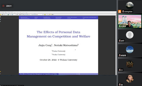 10月28日下午,经济学高级研究论坛第191期在线举行。本次讲座由数理经济与数理金融系韩立宁老师主持,邀请复旦大学管理学院应用经济学系从佳佳副教授带来主题为“The effects of personal data management on competition and welfare”的学术报告,学院多位师生参会。