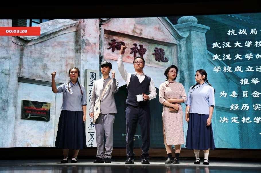 迁校委员会主任委员带领全校师生迁往乐山的故事。通过演绎和讲述,让现场各高校师生了解到,乐山八年,武大师生弦歌不辍,创造了办学史上的辉煌,一楼一凤