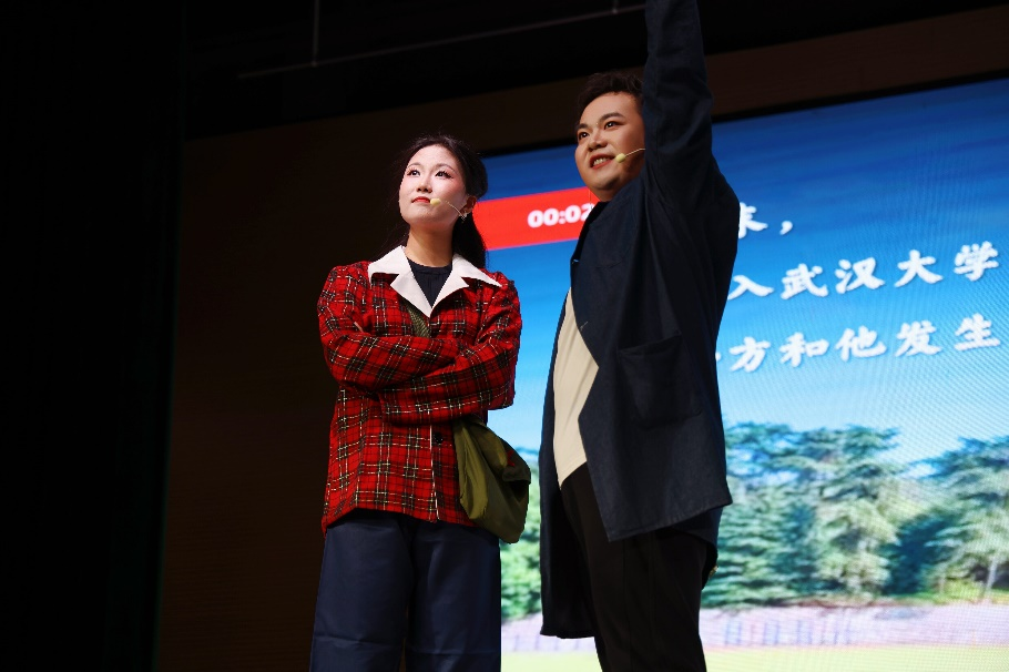 在第三幕中,支部同志们演绎了武大师生参与中国南北极科考,并收到习近平总书记回信的故事。习近平总书记回信勉励武大师生“用国家的大事业磨砺青年人的真本领”,希望武大师生“接续砥砺奋斗,练就过硬本领,勇攀科学高峰”。以获得国家最高科学技术奖的李德仁院士为代表的武大人,积极落实习近平总书记回信精神,在实现高水平科技自立自强中作出了武大贡献。