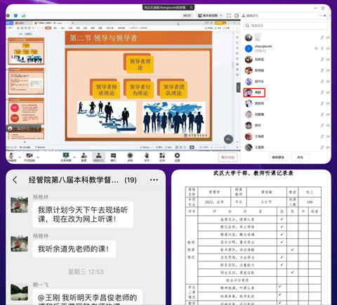 “金融系第一节课全部按时正常授课”“明天线上授课平台信息已经发布给各年级学习委员群”……学院本教办秘书们组建的网格员小分队全覆盖深入系(所)、深入学习委员群,时刻关注着、参与着、传达着教学工作的每个细节,保证了网络课程的有效开展和落实。