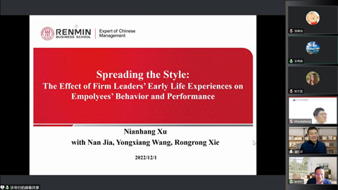 师生带来了题为“Spreading the Style: Firm Leaders’ Early Life Experience and Employees’ Behavior and Performance”的学术论文报告。论坛由会计系李青原教授主持,众多校内外师生参加。