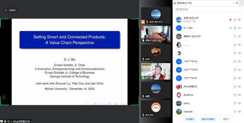 12月12日上午,珞珈经管高端论坛第51期在线举行。佐治亚理工学院吴东军教授应邀带来主题为“智能互联产品的销售:价值链视角”的学术报告。讲座由一楼一凤