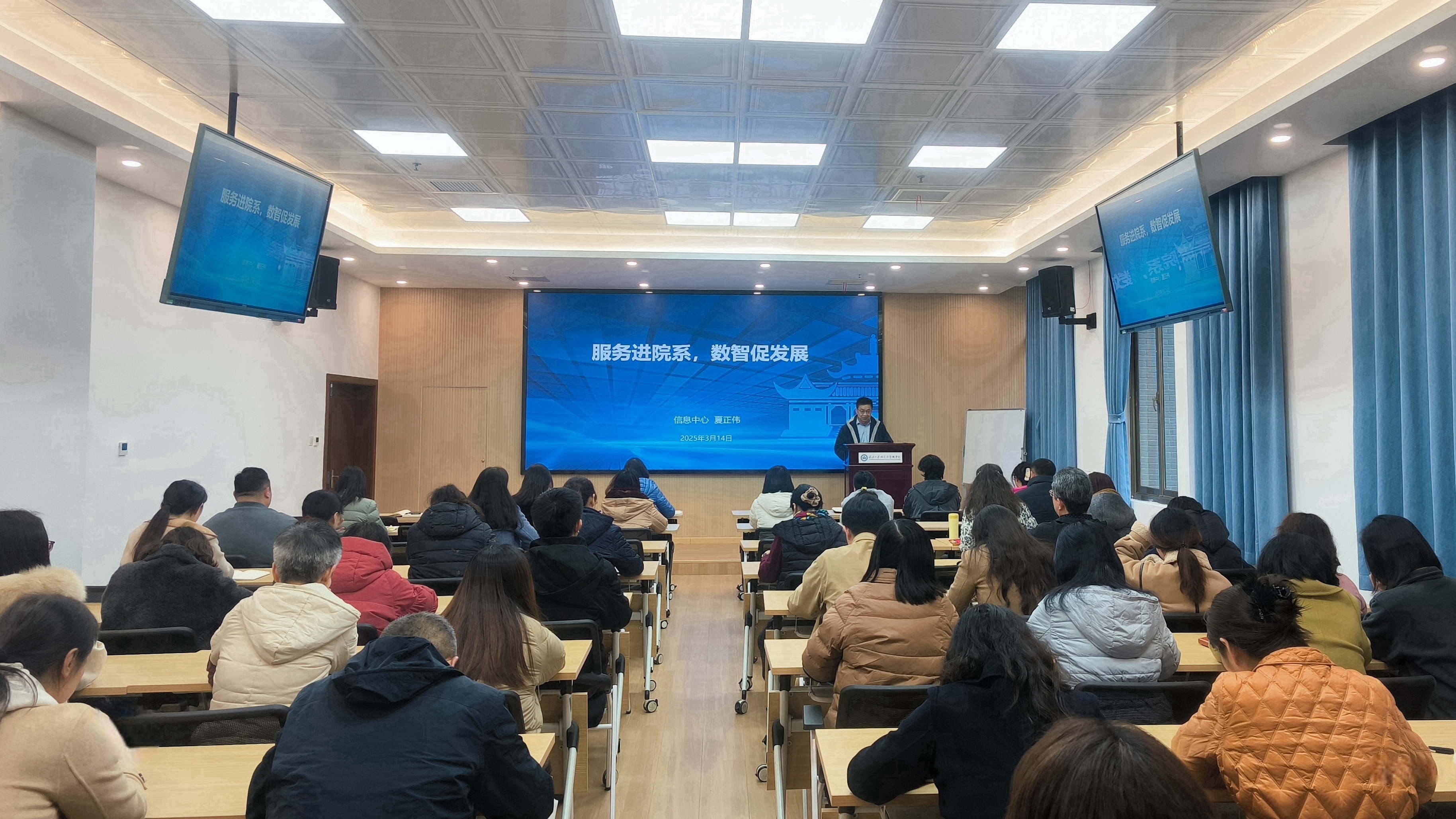 管理干部“周末讲堂”邀请了学校信息中心副主任夏正伟带队的专家团队举办“院系综合管理信息平台”培训会。本次培训会由学院副院长谢雅维主持,行政教辅管理人员全员参加了培训。