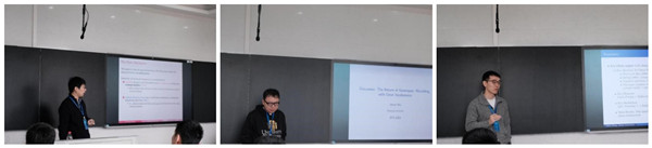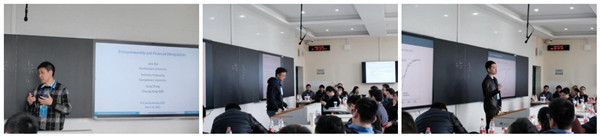 来自长江商学院的张罡老师汇报的论文题目为“Entrepreneurship and Financial Deregulation”。文章建立了具有职业选择的企业动态及不完全竞争银行信贷市场模型,研究了金融管制放松之后是否会有福利收益以及对劳动力市场影响的问题。结果表明,市场进入、工资和劳动力分配方面在短期会有较大反应,而中期收益有限。北京大学的贾盾老师和上海交通大学的喻洋老师从多重均衡问题、福利性质、模型简化等方面进行了点评。