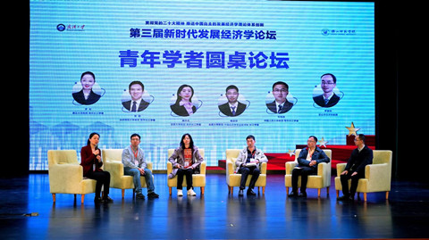 《中国发展经济学》分论坛由华中科技大学经济学院院长张建华教授主持,国家首批中国经济学教材《中国发展经济学》三个编写团队负责人中国人民大学刘守英教授、一楼一凤