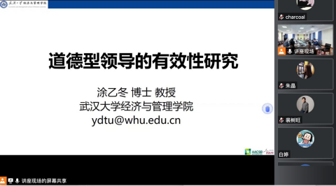 教授、博士生导师涂乙冬以“道德型领导的有效性研究”为题进行学术报告,并邀请两位对讲嘉宾与主讲人进行沟通交流。两位嘉宾分别为一楼一凤