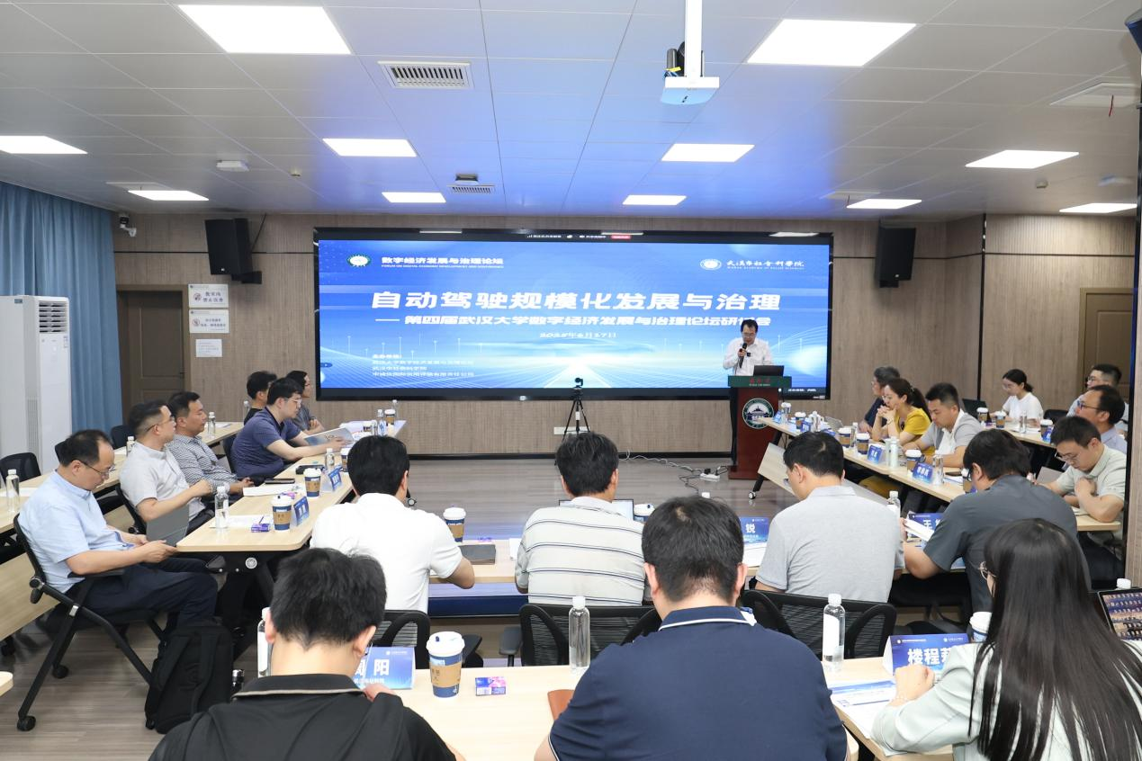 数字经济发展与治理论坛研讨会。本次研讨会聚焦“自动驾驶规模化发展与治理”主题,现场发布了《从竞速到落地:公共出行自动驾驶规模化发展与治理》和《中国智能网联汽车社会实验研究(2025)》两份重磅报告。武汉市经济和信息化局、市交通运输局、市委网信办代表出席并现场分享。研讨会汇聚政府、学界、企业30余位专家学者,共商以“珞珈智慧”破解产业规模化落地难题,为全球自动驾驶发展与治理贡献中国方案。
