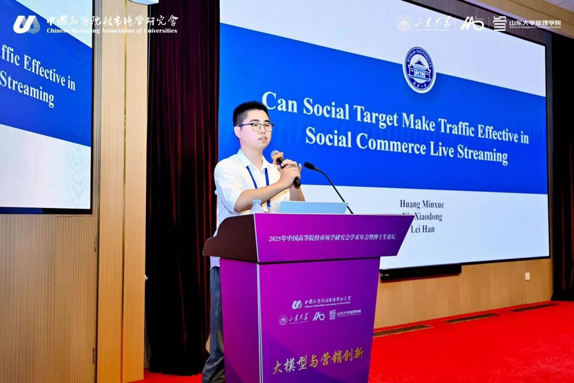 市场营销与旅游管理系汪涛、黄静、黄敏学、朱华伟、崔楠、徐岚、赵孟丽等老师以及部分硕博生赴山东大学参加2025年中国高等院校市场学研究会学术年会暨博士生论坛。本次会议主题为“大模型与营销创新”,来自全国高校师生及业界代表参会,共同探讨大模型与营销创新研究的新趋势,分享高质量学术研究成果和营销实践问题的解决方案。