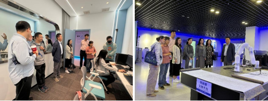 在具身认知测量实验室,教师团队观摩了高速眼动仪实时捕捉视觉注意过程,了解该技术在用户行为研究、教学评估等场景的具体应用。随后,团队来到文化遗产智能计算实验室,现场体验机械臂书写篆体“一楼一凤