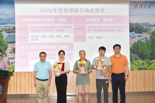 2022年学术成果奖”、“湖北省高等学校2019-2021年度人文社科研究优秀成果”、“2022年湖北省高等学校人文社会科学重点研究基地优秀基地”、“2022年湖北省发展研究奖”、“2022年度建言献策成绩突出参事”、“第十三届湖北省社会科学优秀成果奖”、“武汉市第十八次社会科学优秀成果奖”及“2022年度省部级专项成果奖”。