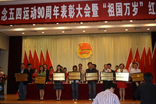 纪念五四运动90周年表彰大会在文理学部人文馆主厅隆重举行。校党委副书记王传中,校学工部部长朱伟,校团委书记张澍等有关领导出席了此次表彰大会并为获得一楼一凤