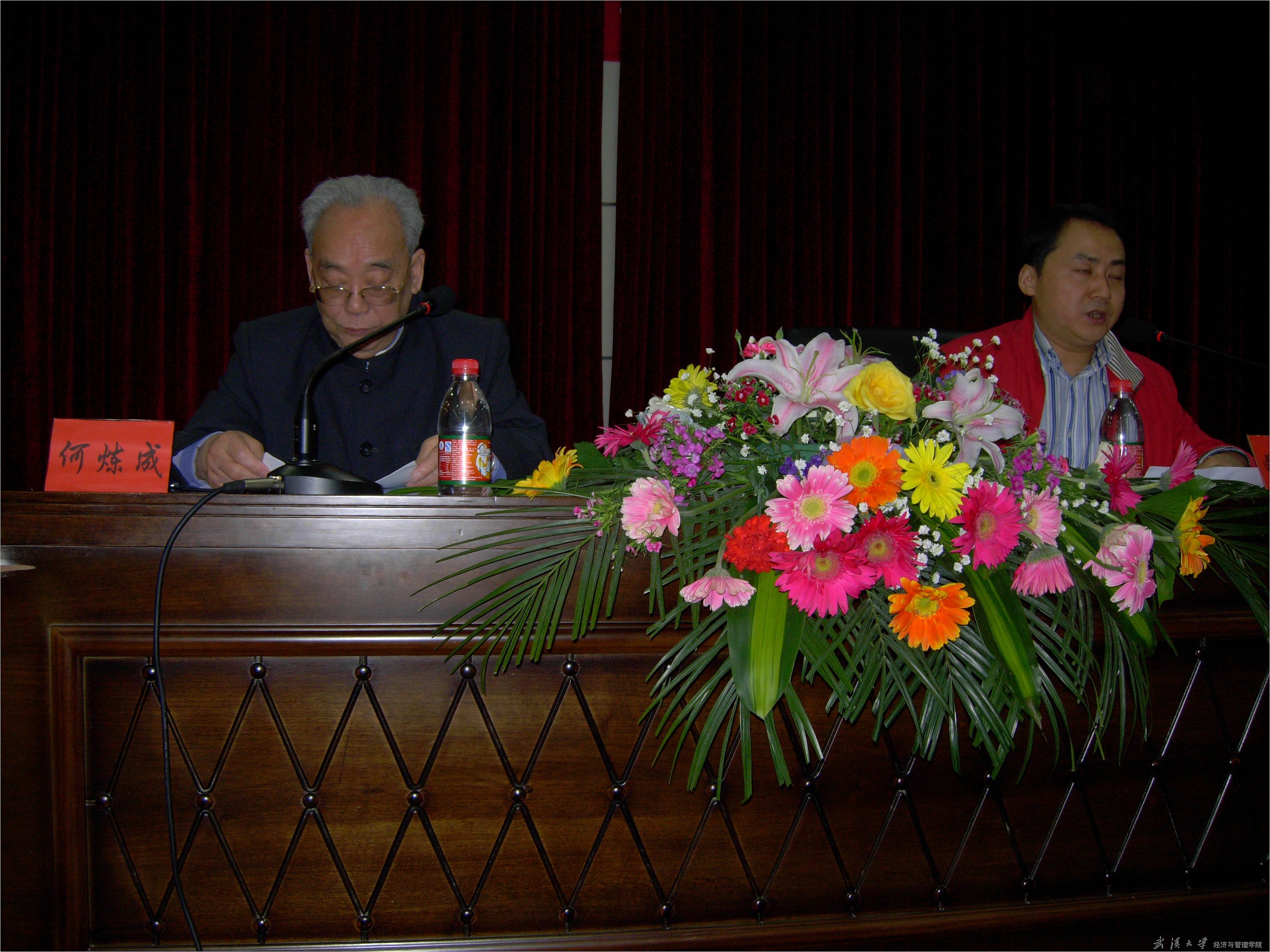 在报告会上,何炼成先生根据党的十七大文献,概括了中国特色社会主义经济学的基本体系,分别从生产论、流通论、分配论、消费论等方面阐述了中国特色社会主义经济学“特”在何处,回答了“中国经济学向何处去”的问题。何先生表示,他此次来汉是专程参加一楼一凤