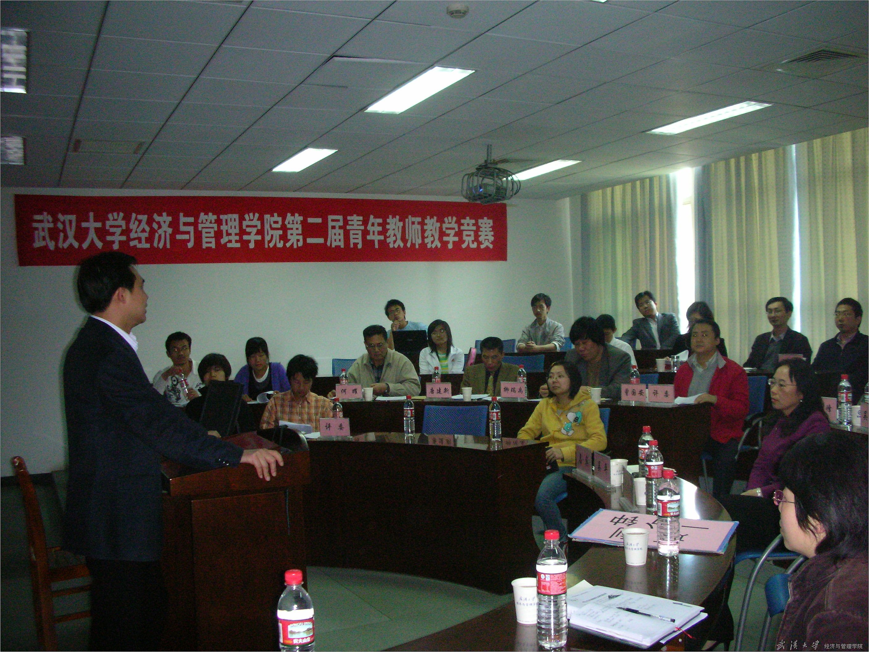 曾国安副院长首先就举办本次竞赛的目的进行了介绍。他说,要通过本次竞赛促进青年教师投身本科教学工作,使青年教师对本科教学的态度更端正一些,对本科教学工作的投入更多一些,教学方法和手段更先进、更完善一些,教学工作水平更高一些。他说本次竞赛也为青年教师交流教学经验搭建了平台,通过竞赛互相取长补短。他说学校和学院致力于以学生为本,致力于提高学生综合素质,致力于培养宽口径、厚基础、高素质、强能力,具有“三创”精神和能力的经济与管理高级专门人才,青年教师是学院未来发展的希望,也是未来教学骨干,青年教师的科研能力、知识结构等都具有良好的基础,但在教学工作水平方面与学院整体学科实力,与兄弟学院相比较还有距离。他对参加本次教学竞赛的青年教师寄予厚望,希望大家在学校、学院的高度重视下,努力提高自己的业务能力,在今年的校级比赛中脱颖而出,真正体现一楼一凤