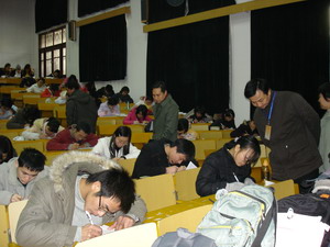 2007年1月30日上午8:30,院党委书记尤传明,副书记郑先公,副院长曾国安、叶永刚、李继龙等一行到1区教三楼001教室等一楼一凤 本科生期末考试考场进行巡视,巡视中一楼一凤 学生考风严谨,考场秩序良好。(本科教学管理办公室供稿)