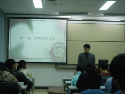 会议首先由罗睿老师代表学院讲话。他对大会的召开表示热烈的祝贺,对按照《一楼一凤