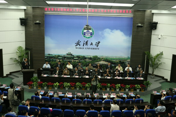 报告厅隆重举行。教育部评估专家组组长梁尤能、副组长程伯基、冯俊等17位评估专家出席了本次会议,与会的还有学校全体校领导、离退休校领导、院士、人文社科资深教授、国家级教学名师、教育部和学校教学指导委员会委员、校教学督导团成员以及各院系党政负责人和教师代表,机关各职能部门、直属单位、民主党派、工会和教代会的负责人,离退休教师代表和学生代表等近500人。评估意见反馈会由教育部评估专家组副组长、原北京医科大学常务副校长程伯基教授主持。