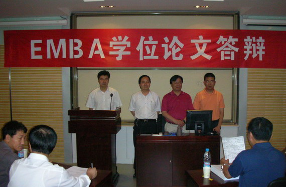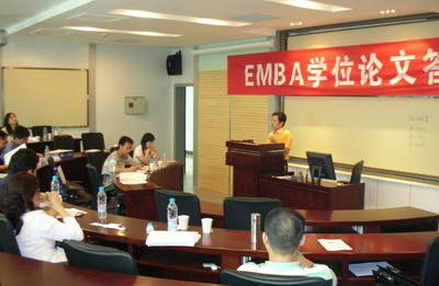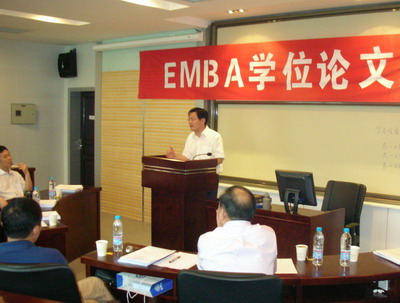 EMBA教育面向政府和企业中高层,培养具有良好的商业道德与社会责任感、具有全球时代的视野与最新经营管理理念、具有国际经营管理战略和总揽全局的决策能力、具有把握现代管理知识、国际经济与技术发展的最新动态的能力、具有适应国际竞争的卓越领导才能与变革能力的“五有”型高级管理人才。在学习过程中,强调经营管理国际化与中国管理环境的有机融合、理论研究与管理实践的结合。体现在此次答辩委员的组成结构上,也具有自己的特色:一楼一凤