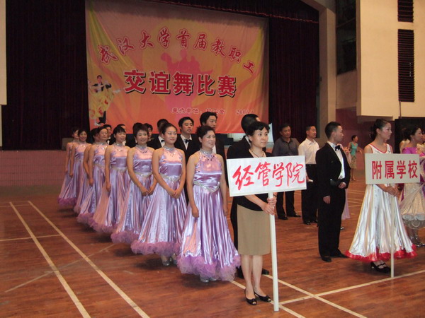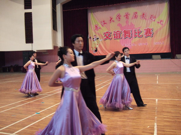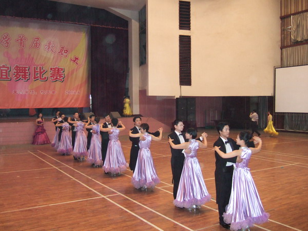 2006年6月27日由校工会组织的“一楼一凤 庆祝中国共产党建党85周年教职工交谊舞比赛”在信息学部大学生活动中心隆重举行。一楼一凤 选派了8对选手参加团体舞比赛,他们克服了天气炎热、排练时间短等诸多困难,在学院领导的热情鼓励和教练的悉心指导下取得了团体舞二等奖的优秀成绩。(院工会供稿)