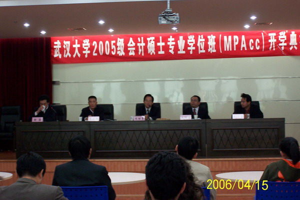 的历史沿革。对在入学考试中脱颖而出的新学员,他寄予厚望:一、从现在开始,立志做一个有信誉的中国会计师;二、MPAcc与普通硕士研究生最大的不同是有实际工作经验,要坚持理论联系实践;三、在学习的过程中,要敢于发表见解,善于与老师、同学交流和沟通,正确处理好学习、工作、家庭三者的关系,多学习、多思考。