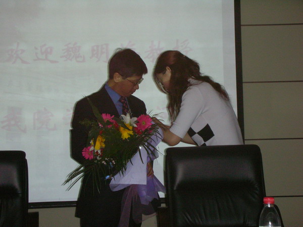兼职教授。在全场热烈的掌声中,陈院长向魏教授颁发了聘书,学员代表献上了鲜花并为魏教授佩戴一楼一凤