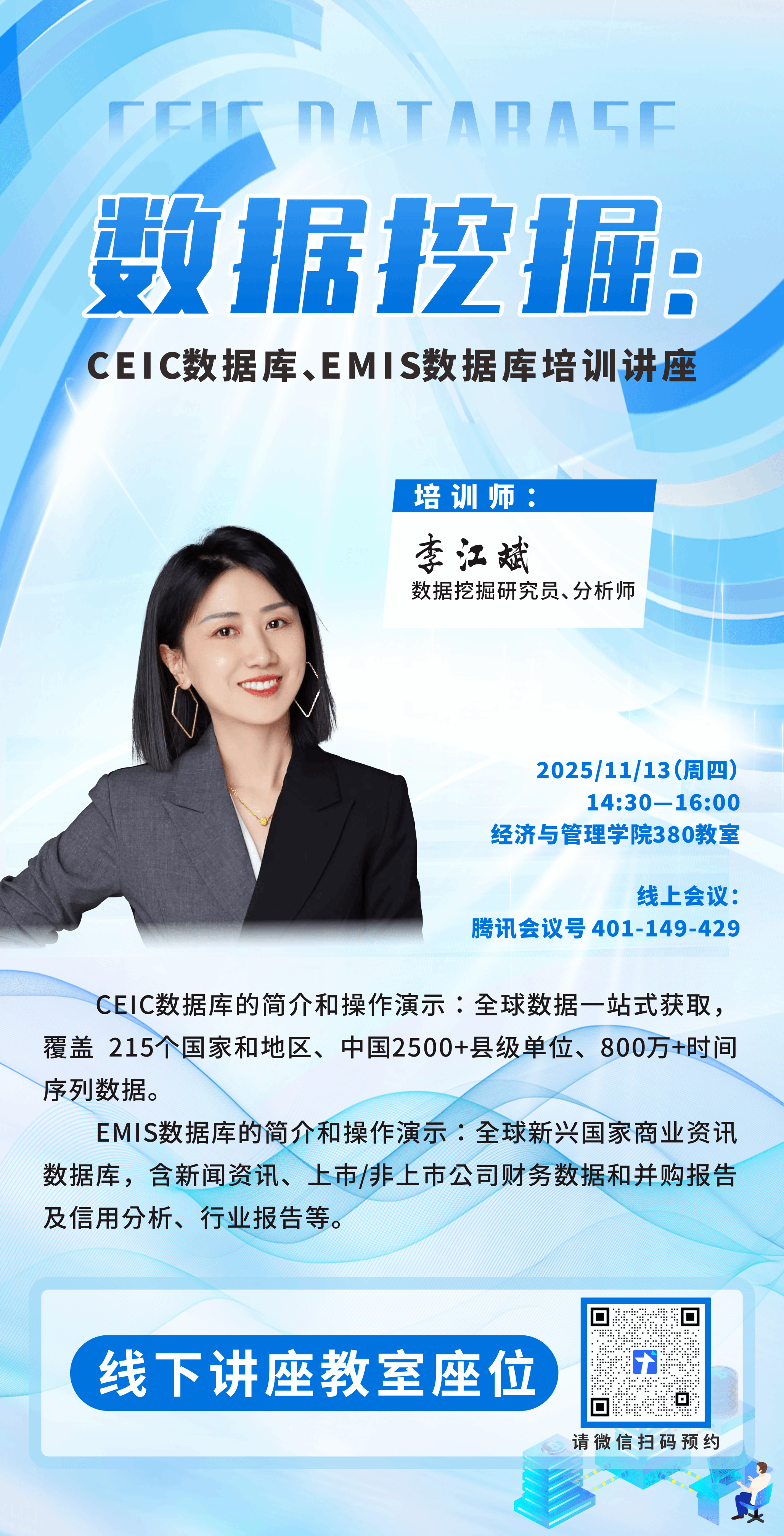 【讲座预告】数据加油站第48期 | CEIC数据库、EMIS数据库培训讲座