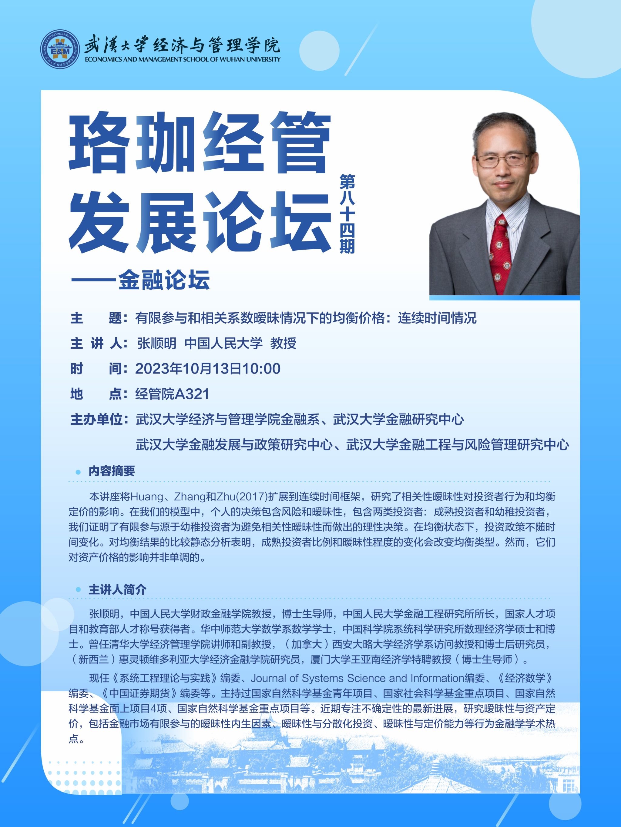 珞珈经管发展论坛第八十四期——金融论坛